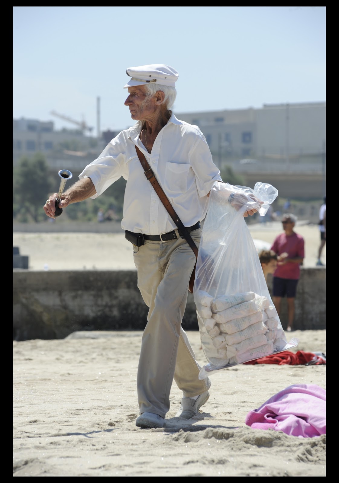 O Senhor José Leocádio faz kilómetros pela areia e pelas praias do Porto – entre a Foz e Matosinhos – a vender batatinhas, sendo já uma figura icônica do Porto, sempre com a sua camisa branca.